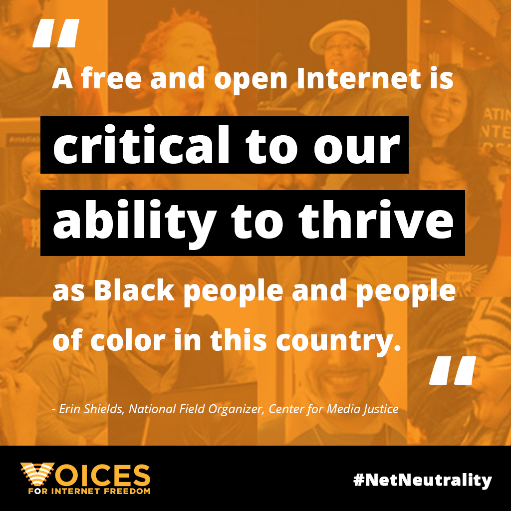 A free and open internet—#netneutrality—is essential to the work of people whose voices have traditionally been marginalized, misrepresented, and even ignored. Media ownership for people of color hovers at around 3%. With a free and open internet, people can bypass media gatekeepers and speak directly to one another.