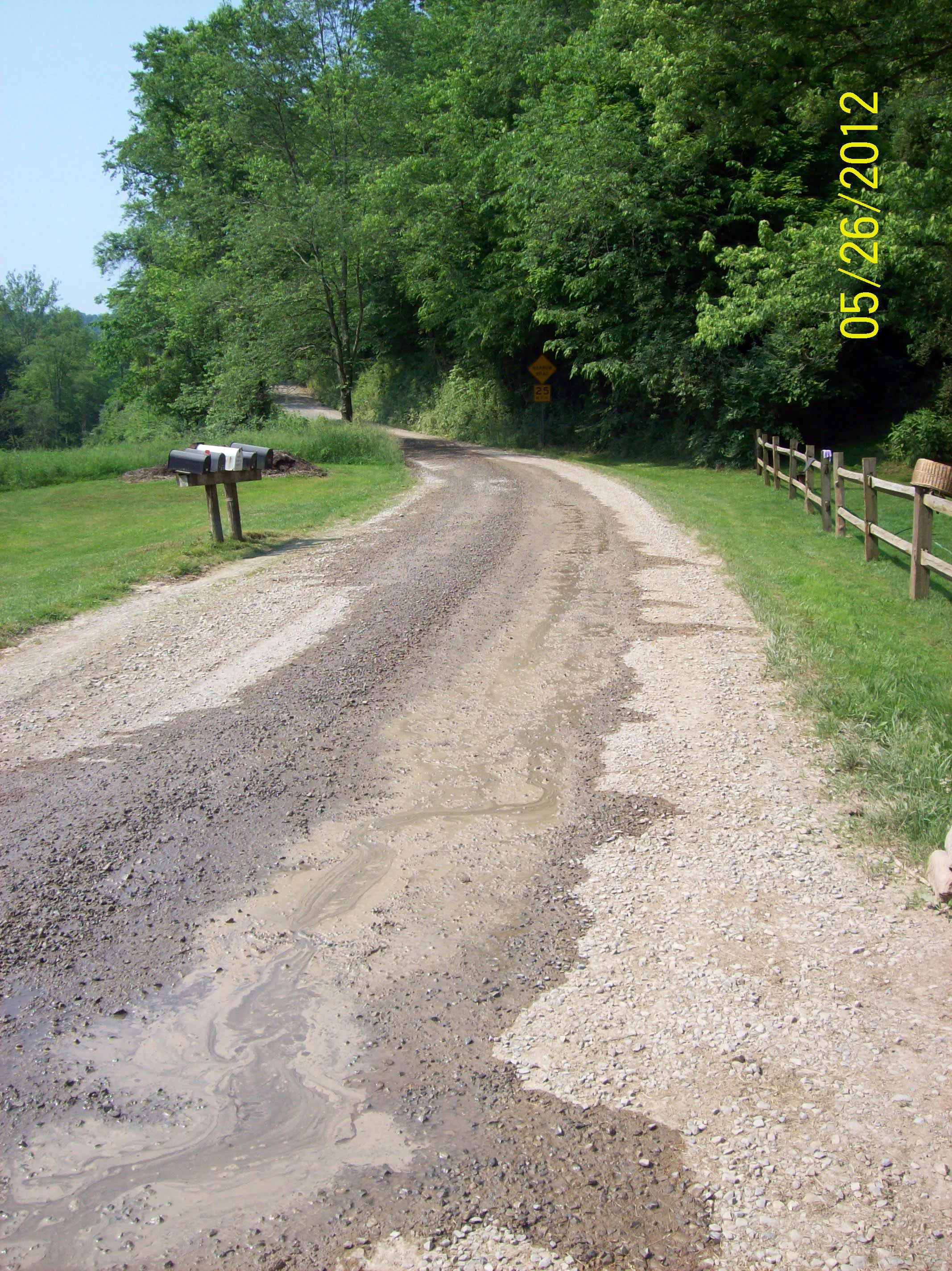 Some citizens fear the WV Department of Environmental Protection (DEP) will not consistently follow up on future incidents of gas industry pollution. From past experience, DEP officials don’t come out until days after people call to report an incident. When citizens turn in film footage and/or provide the DEP with time stamped photos — such as photos that document water withdrawals from streams during prohibited withdrawal periods — DEP does not follow up in a timely fashion, if at all. In the case of the incident documented above, the DEP was relatively swift to respond, requiring the gas company to take some clean-up measures, but the agency has yet to provide residents with all the information they have requested concerning the nature of the pollutants that were sprayed onto the roadway.