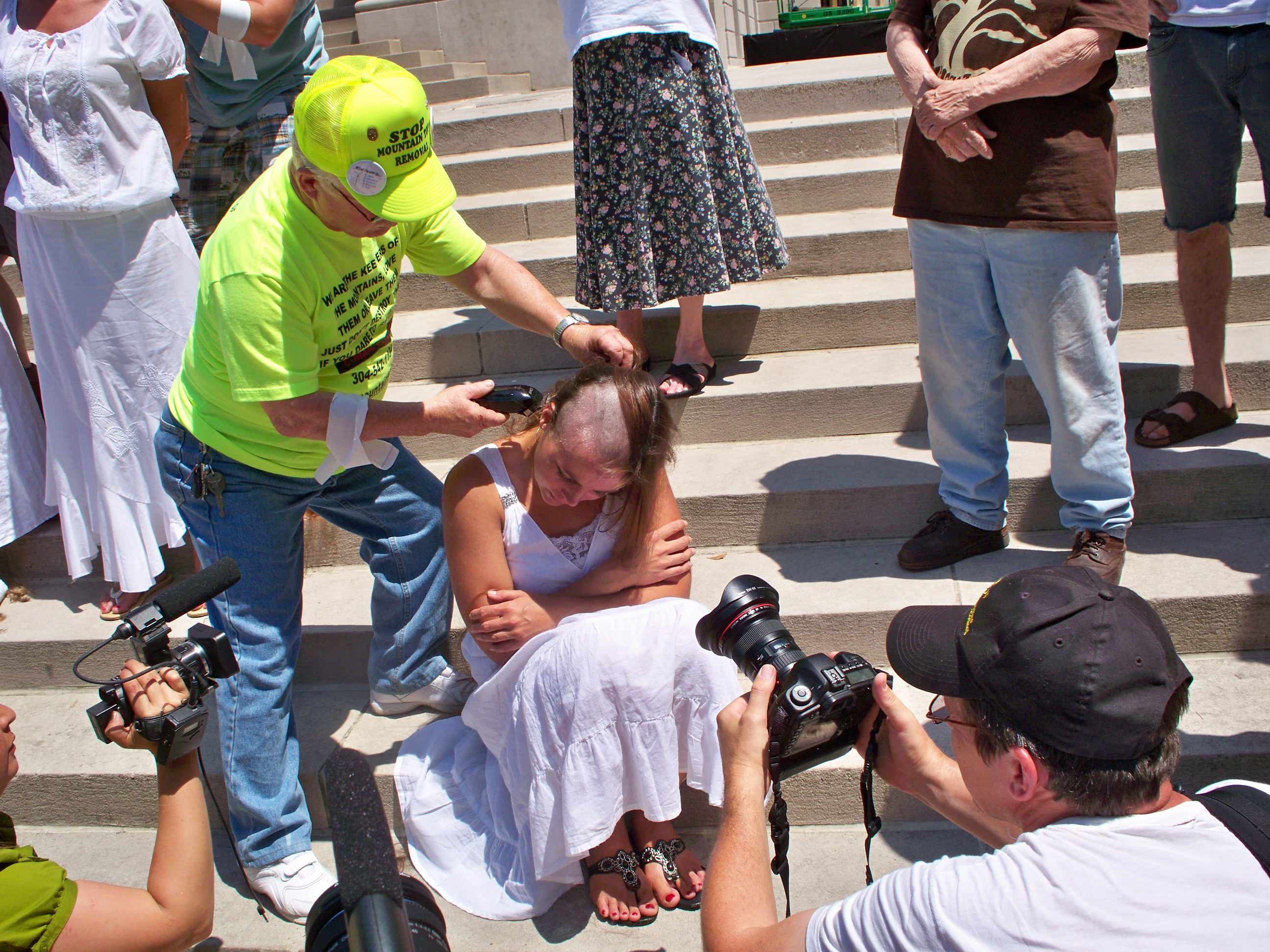“I never thought I would be cutting my hair off on the West Virginia Capitol steps. I never thought I would be in D.C. talking to Congress, and I never thought I would be risking arrest. But as a mother, I would cut off my foot for my children. As a mother, whatever it takes, I will do it for my children,” said Paula Swearingen of West Virginia, “And I will not allow mountaintop removal to continue to poison my children.”