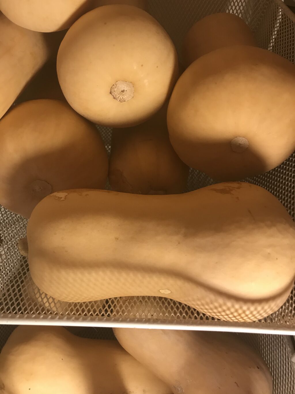 All squash are pretty easy to grow—they want fertile soil, full sun, and plenty of water. Yeah, just like everyone else. Given those basic requirements, most squash will produce long vines and plenty of fruit. But here’s another place the species come in—the moschata kinds don’t do well in places with inadequate summer heat…never a problem here—but they resist borers which often are a problem here, especially in low places and wet years. Maximas can be destroyed by borers. Mixtas also resist borers, but cushaws are such large squash, they can be hard to use. Hence—butternuts are my standby. I have tried many other kinds, looking for variety in color or shape or flavor, but the butternuts always seem to outperform anything else.