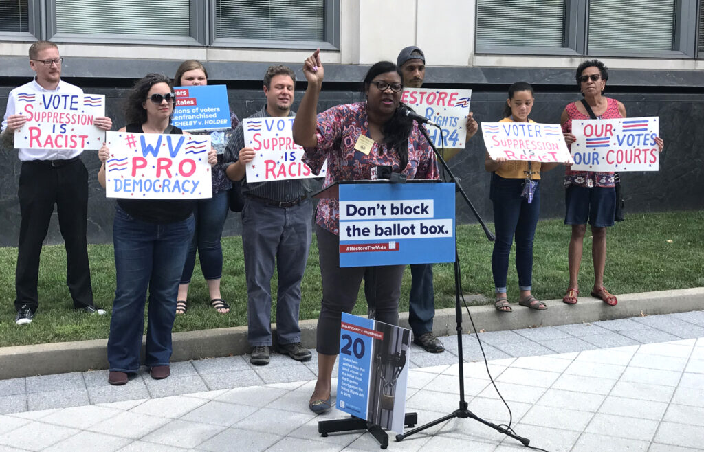 We were fortunate that Delegate Danielle Walker heard about our Restore the Voting Rights Act event and dropped by to speak to the crowd during the Restore the Voting Rights Rally and Press Conference.