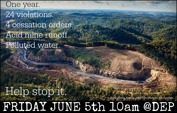 June 5: 10 -11 a.m Rally! at the WV DEP (601 57th St. SE next to the Kanawha Mall). Rally to urge the DEP to hold Keystone Coal accountable by issuing the Show Cause Order and revoking the KD#2 permit!