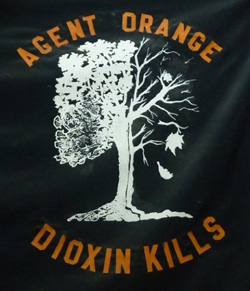 Dioxin is made of oxygen and carbon atoms with chlorine atoms attached to 6-sided hydrocarbon benzene rings. Its IUPAC name is 2,3,7,8-Tetrachlorodibenzo-p-dioxin (TCDD). There are many other health effects associated with this compound. It is very persistent in the environment, and though the production of Agent Orange was banned in the USA in 1971, in will be with us for decades to come.