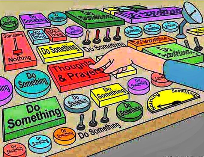 I don’t remember what hashtags where trending back in 2017, post-Charlottesville, when I so naively thought the Racist-in-Chief surely wouldn’t be president much longer. “Surely” isn’t a word I’ll use this time. “Surely” maybe implies that someone else will do something. With so many politicians being “wholly owned subsidiaries of the gun lobby” (a quote from the “Call It What It Is” video-link right above) it seems useless to give them a call, but we must contact politicians who have remained silent and demand that they use the bullhorns they have, thanks to their positions, to condemn any leaders who spew vile rhetoric, to shout ¡Enough with the hate!, and to pass some legislation that addresses this madness.