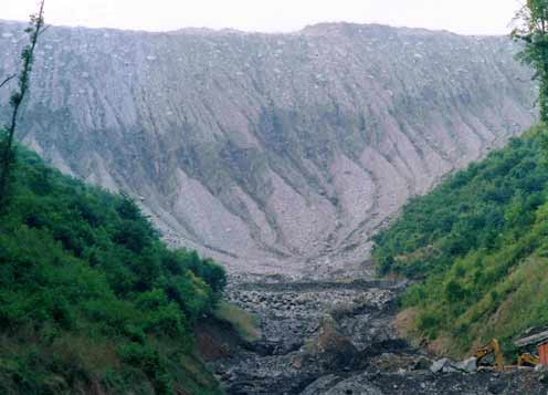 - Joe Barnett of Artie, W.Va. lives below this White Oak Creek valley fill. During the July 2001 floods, the sediment pond below the valley fill fill…