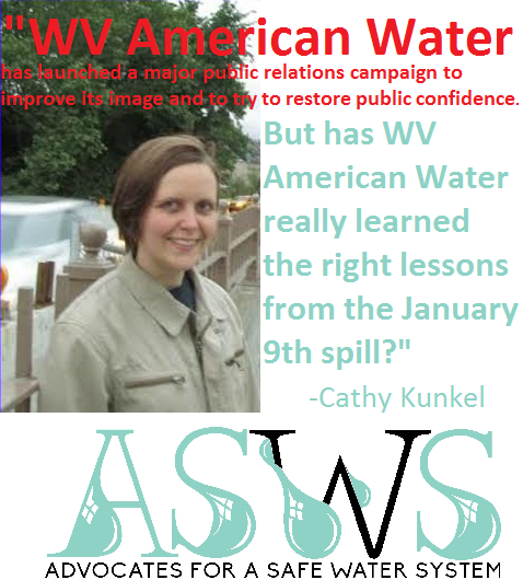 To release their new report, “West Virginia American Water Company and the Case for Public Ownership and Operation,” our good friends at the Civil Society Institute held a tele-press conference on January 7. Making statements and fielding press questions were principal report author and CSI’s senior energy analyst Grant Smith, report editor and Advocates for a Safe Water System volunteer Cathy Kunkel, and former DEP Environmental Advocate Pam Nixon, who is active with the Charleston Chapter of the NAACP member and People Concerned About Chemical Safety. Pam is also on OVEC’s board of directors.