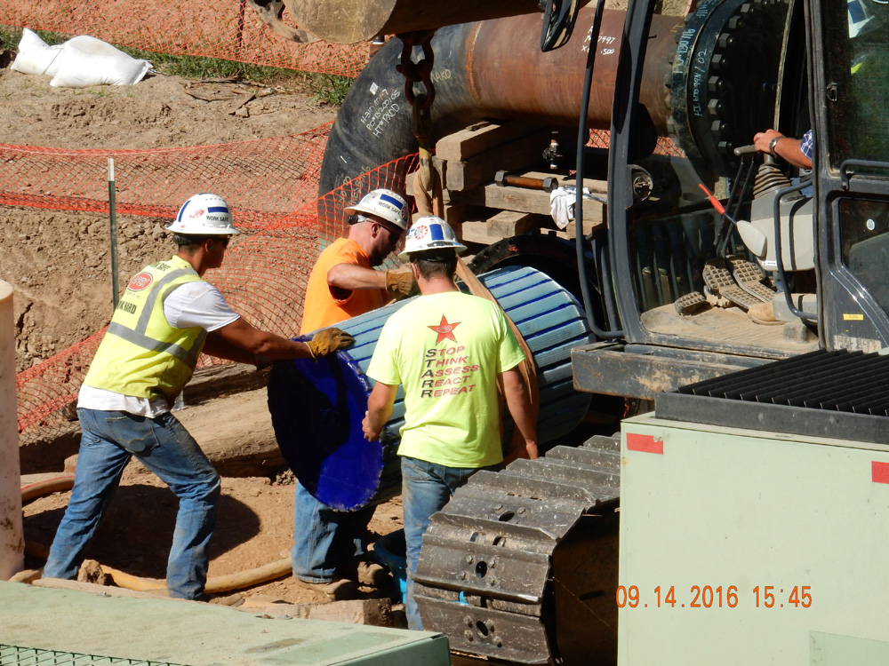 all welds are x-rayed, then the pipeline is hydro-tested, that is, the pipeline is filled with clean water. The line is pressured up beyond the expected MAOP (maximum average operating pressure).