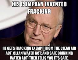 Dick Cheney spearheaded the creation of the Halliburton Loophole, exempting the injection of fracking fluids from the Safe Drinking Water Act. Among other unsavory things, Cheney has also defended the CIA “interrogation tactics” used in the wake of the Sept. 11 attacks.