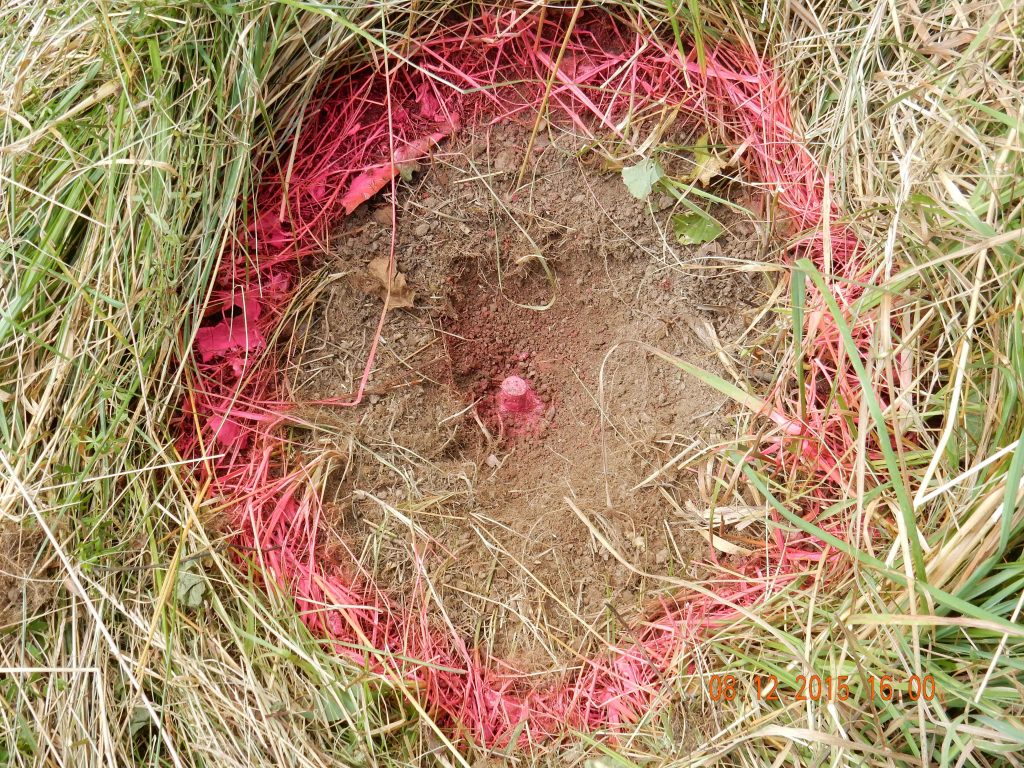 The EQT representative assured me that someone would be out to remove their stakes, flags and the steel pins. I told them that they needed to be prompt and that I would not alter or move their property, and their locating points. The next day, when I got home the stakes with flags were gone, and just a small bare patch of dirt remained near my white plastic fence post marker still stood. It looked good. However, since I am a well-cultivated skeptic of long duration and also a strict adherent to the old Russian proverb, made famous by President Reagan, “Trust but Verify.” I grabbed the garden trowel shown below, dug around a bit, and clink, clink, steel on steel. Guess what. The cosmetic improvement proved rather shallow, literally. The steel pin had just be driven deeper, to look good. Just waiting for my tiller to locate someday. I profusely re-painted the pin, and photographed it and proceeded to send another somewhat harsh and very clearly worded e-mail to EQT. The pin was removed the next day.