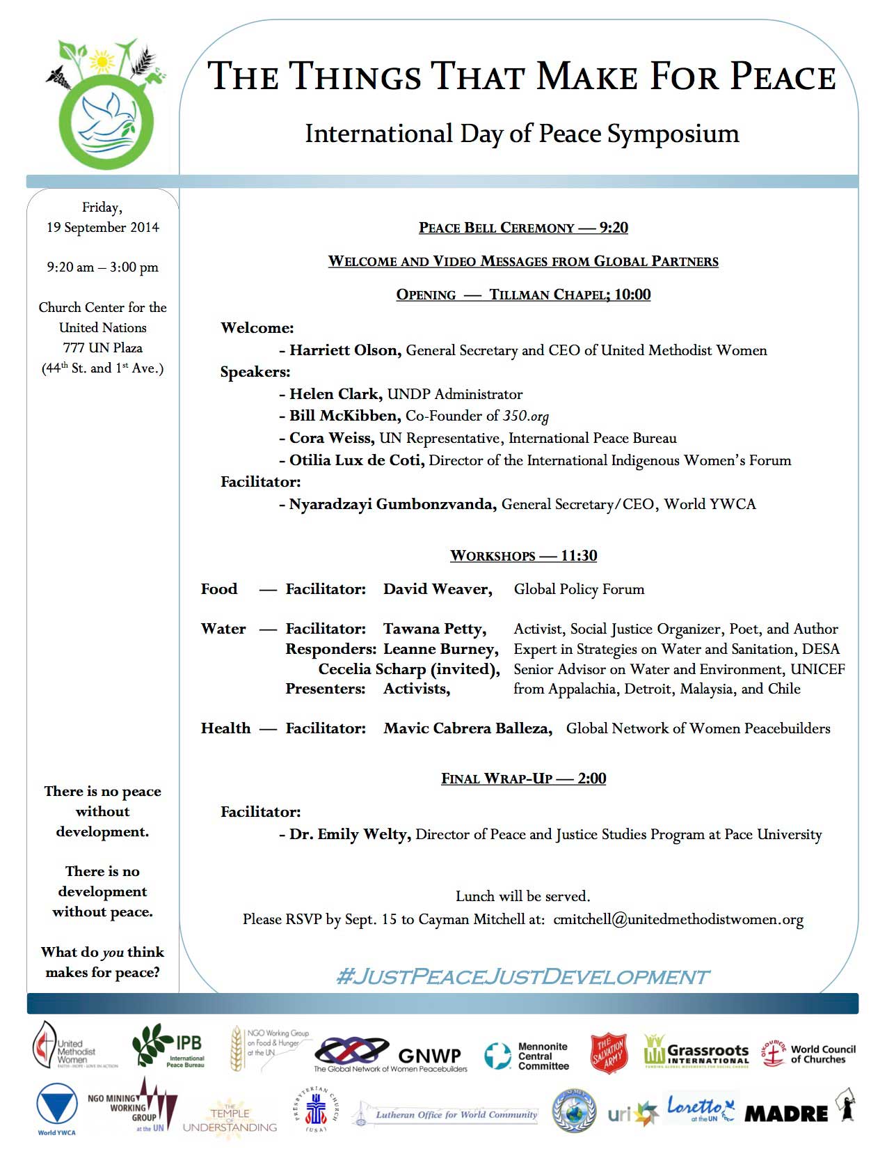 If you are on Twitter, look for the hashtag #JustPeaceJustDevelopment and please re-tweet.
