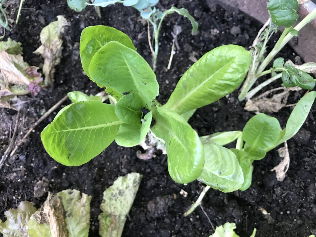 A few weeks later, if all has gone well, the plants have grown nicely and are itching to get out of the confining pot. They may be rootbound, as may store-bought ones. In that case you may want to gently pull apart the spiraling roots to splay them out in the hole in which you set them in the garden. I do this only on the bottom—I don’t want to manhandle the roots too much (womanhandle—whatever).