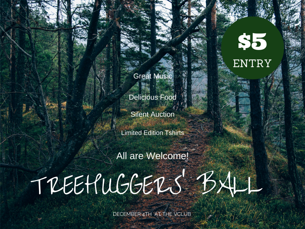 Attire for the evening is casual or Christmas casual. Prize to be awarded for the best ugly Christmas sweater. Don’t worry, your ugly Christmas sweaters may be covered with the purchase of a new Treehuggers’ Ball T-shirt.