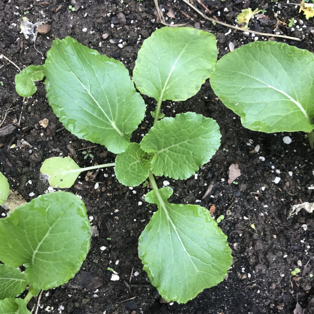 For the spinach and lettuce, you want a finely worked, smooth seedbed. The radishes can be planted with them; I usually drop a radish seed at each end of a row of these and carrots, because they pop up in three days and mark the row. But I often squeeze a row of radishes between those of other salad crops, too. I really like radishes in my salads, and you can only grow them successfully in cool weather. The same is true to a somewhat lesser extent with spinach and lettuce. I currently grow mostly New Red Fire lettuce because it’s very late to bolt and doesn’t get bitter; and I’ve grown Palco hybrid spinach the last couple years because I’ve found it much more productive than others.