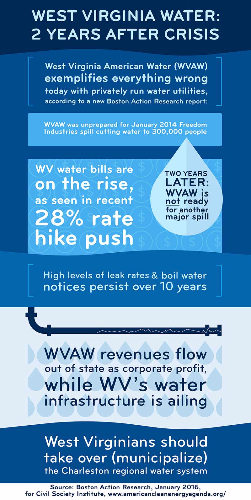 To report is titled “West Virginia American Water Company and the Case for Public Ownership and Operation.” Key report findings include the following:
